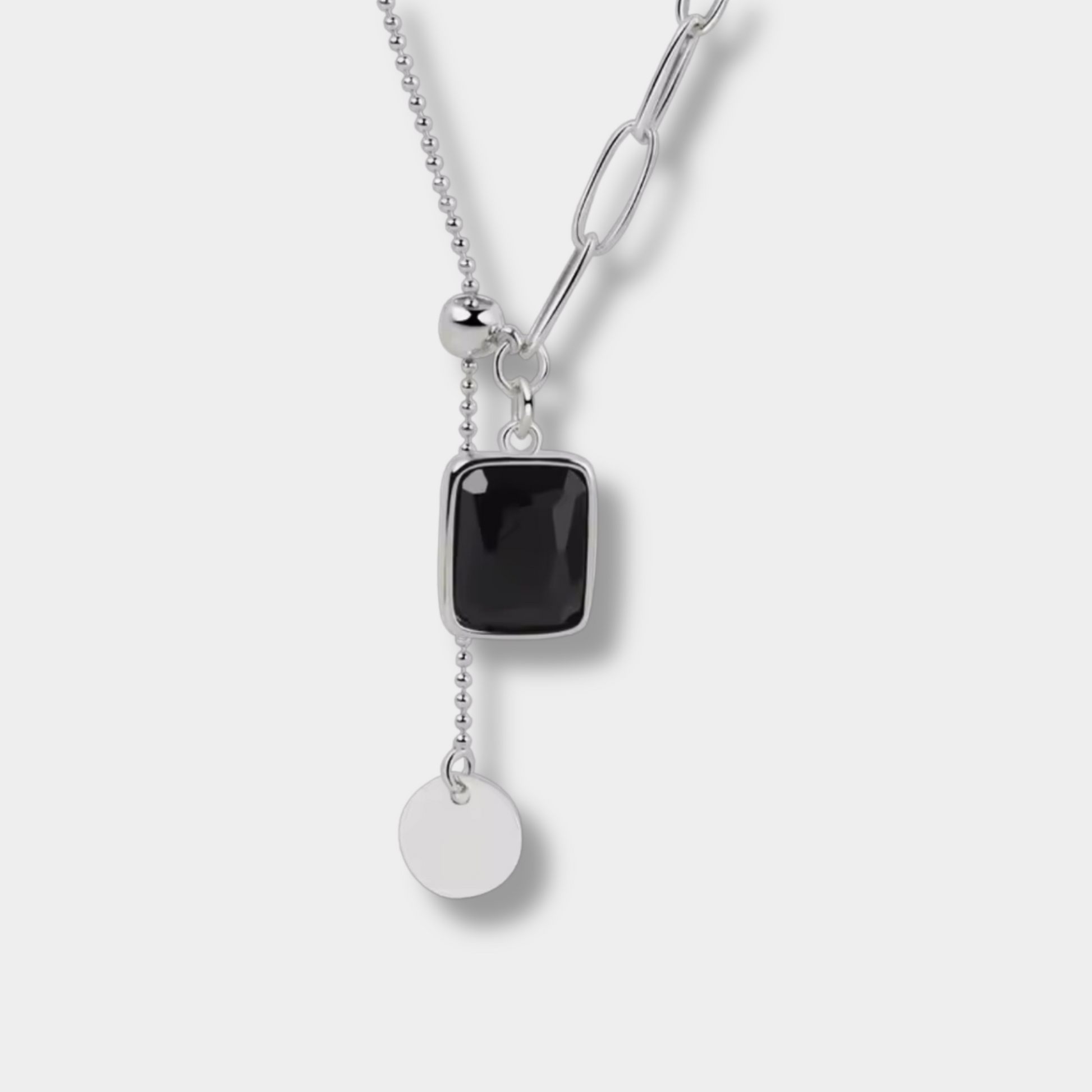 Elevate your style with our black stone tassel necklace. Made with high-grade sterling silver and a stunning black stone, this fashion-forward piece is perfect for any occasion. The elegant adjustable tassel drop adds a touch of trendy flair, making it the perfect treat for yourself or a loved one.