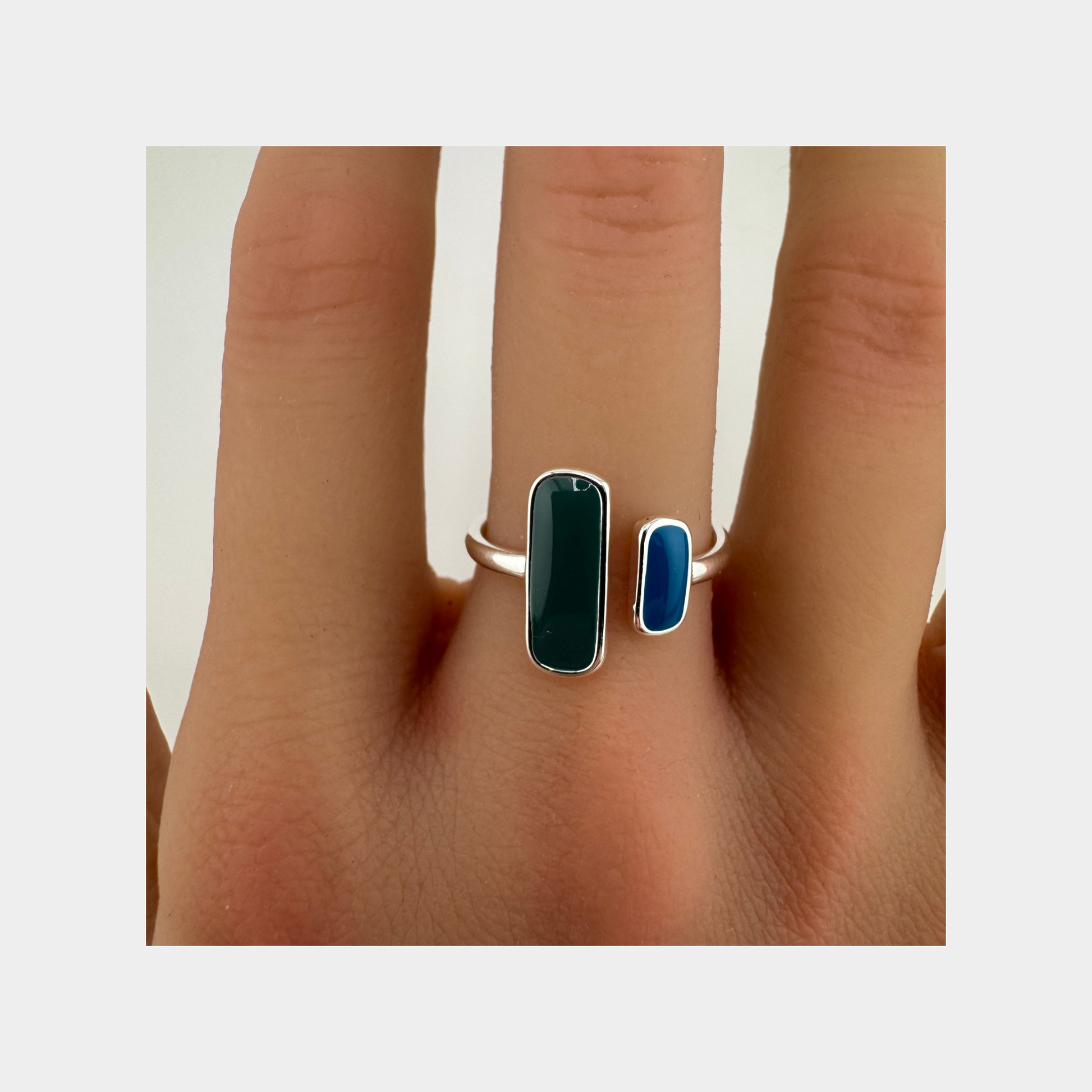 This green and blue retro ring is a timeless piece that makes a bold fashion statement. Its a versatile accessory for any occasion. With its elegant design, this ring is the perfect gift for yourself or a loved one. Incorporate this trendy accessory into your wardrobe for a touch of sophistication and style.