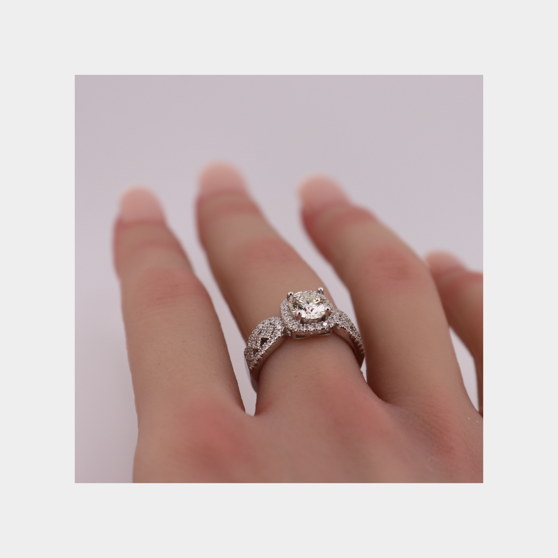 Crafted with the finest moissanite gemstones and sterling silver, this vintage style ring is the perfect choice for a timeless and elegant engagement ring. This ring makes for an ideal gift for a loved one, or a luxurious indulgence for yourself.
