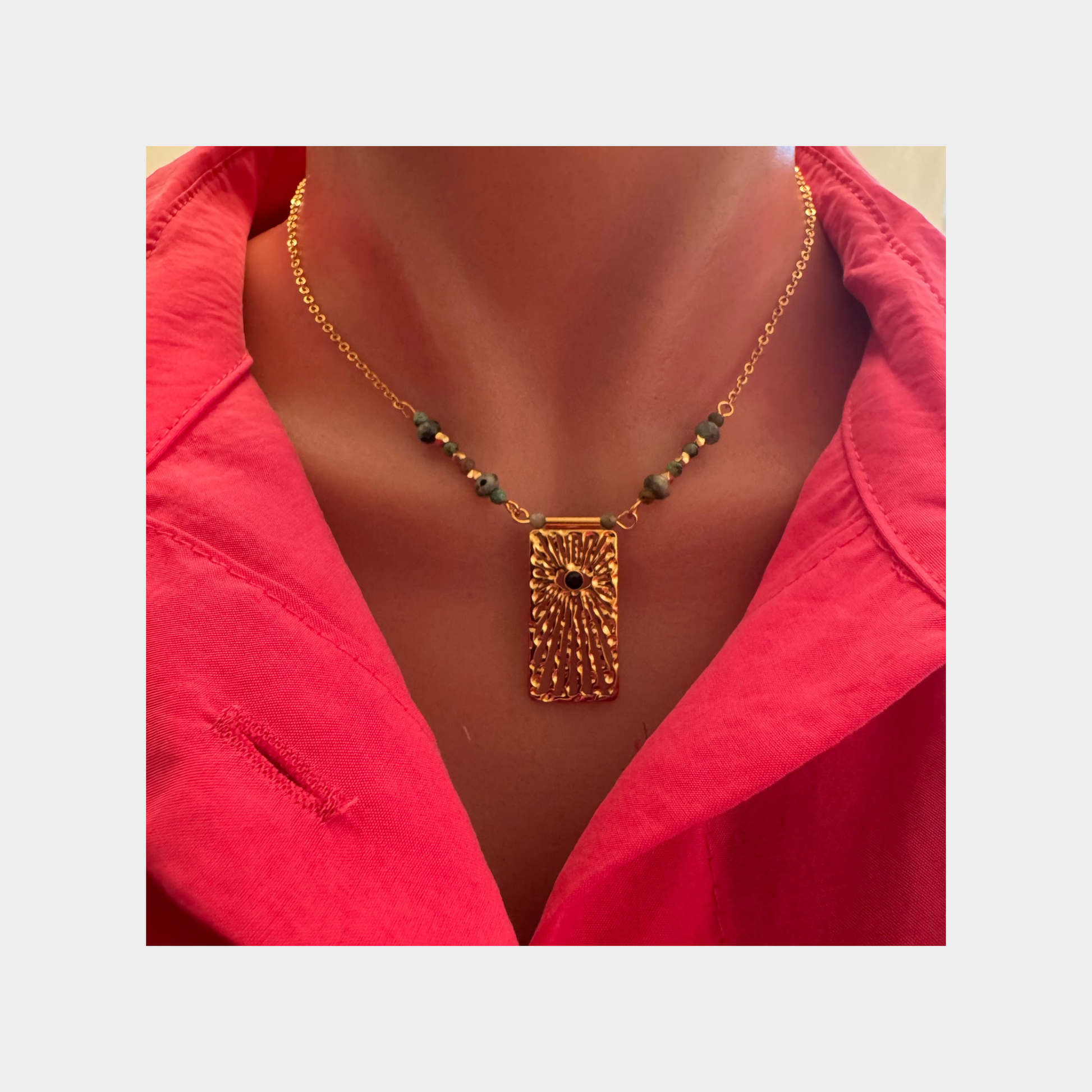 This 18-karat gold plated evil eye beaded necklace is incredibly versatile and can be worn on a variety of occasions. Whether you're looking for something to wear casually or on a night out, this necklace will elevate your outfit and style.