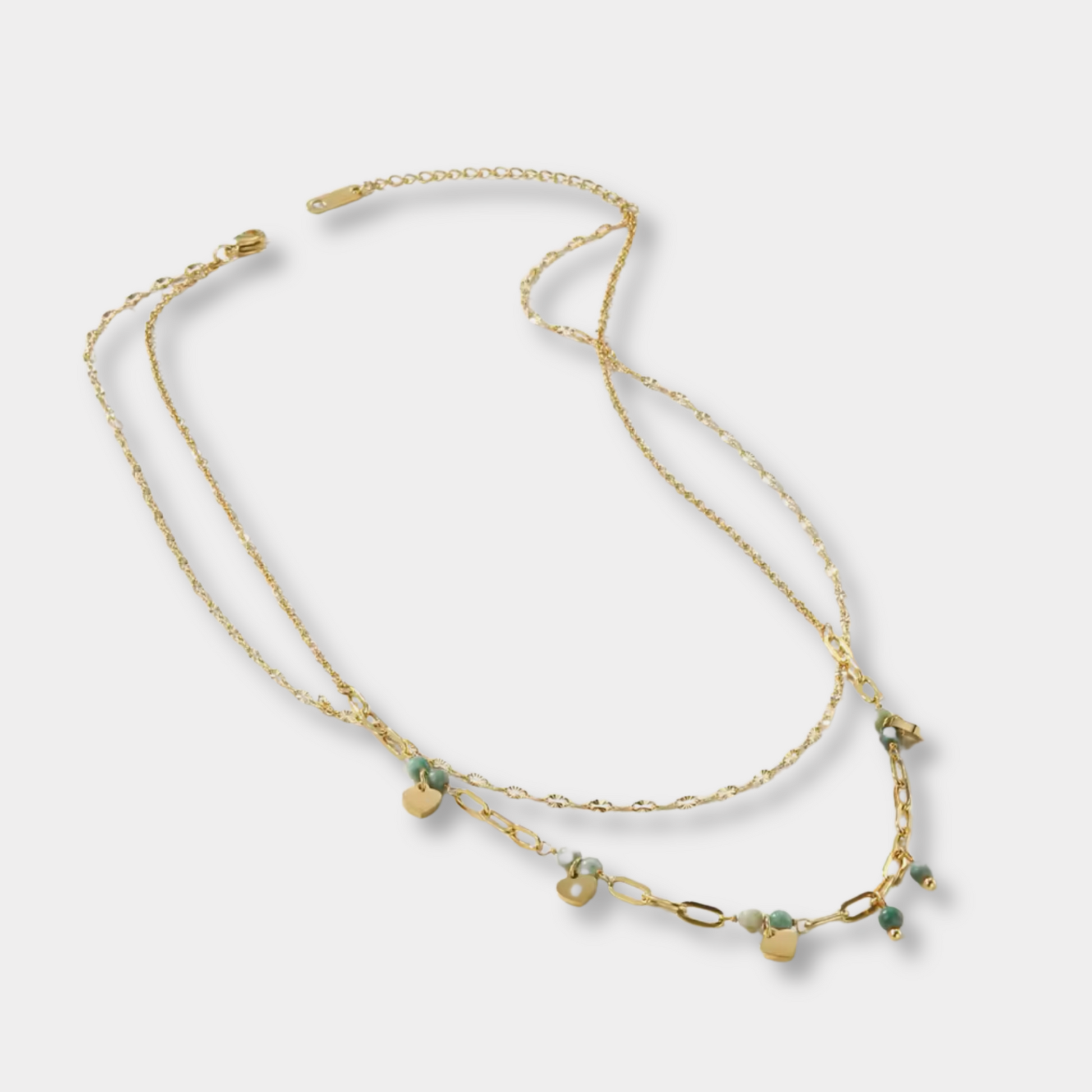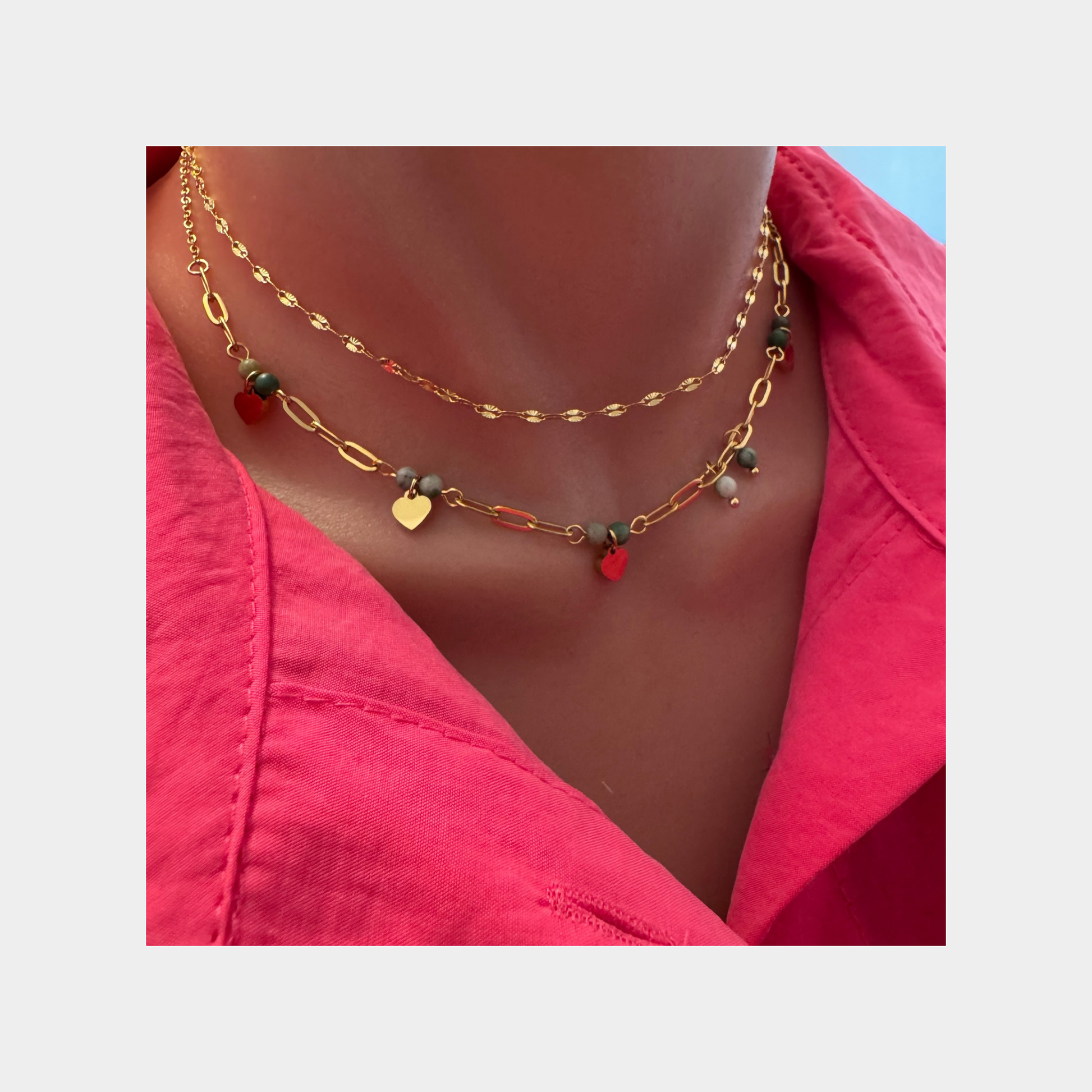 This 18-karat gold plated beaded heart necklace is incredibly versatile and can be worn on a variety of occasions. Whether you're looking for something to wear casually or on a night out, this necklace will elevate your outfit and style.