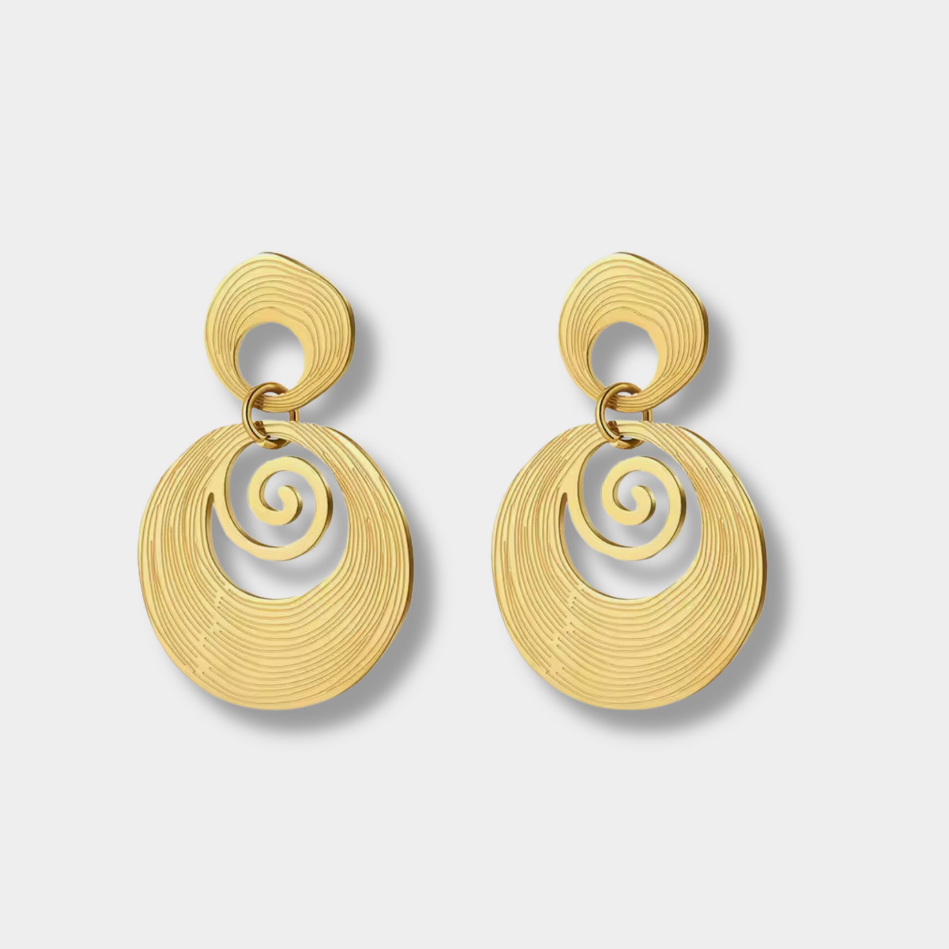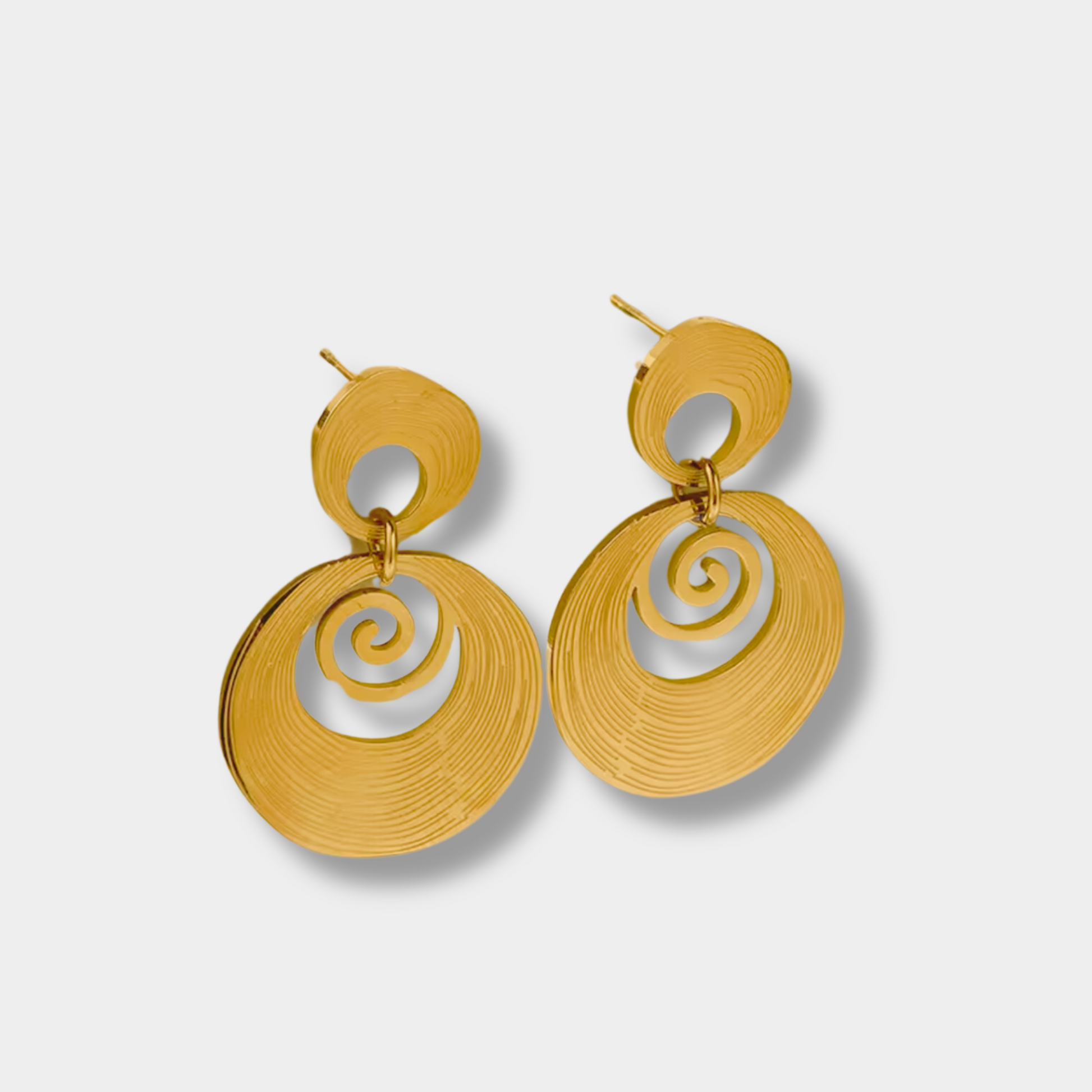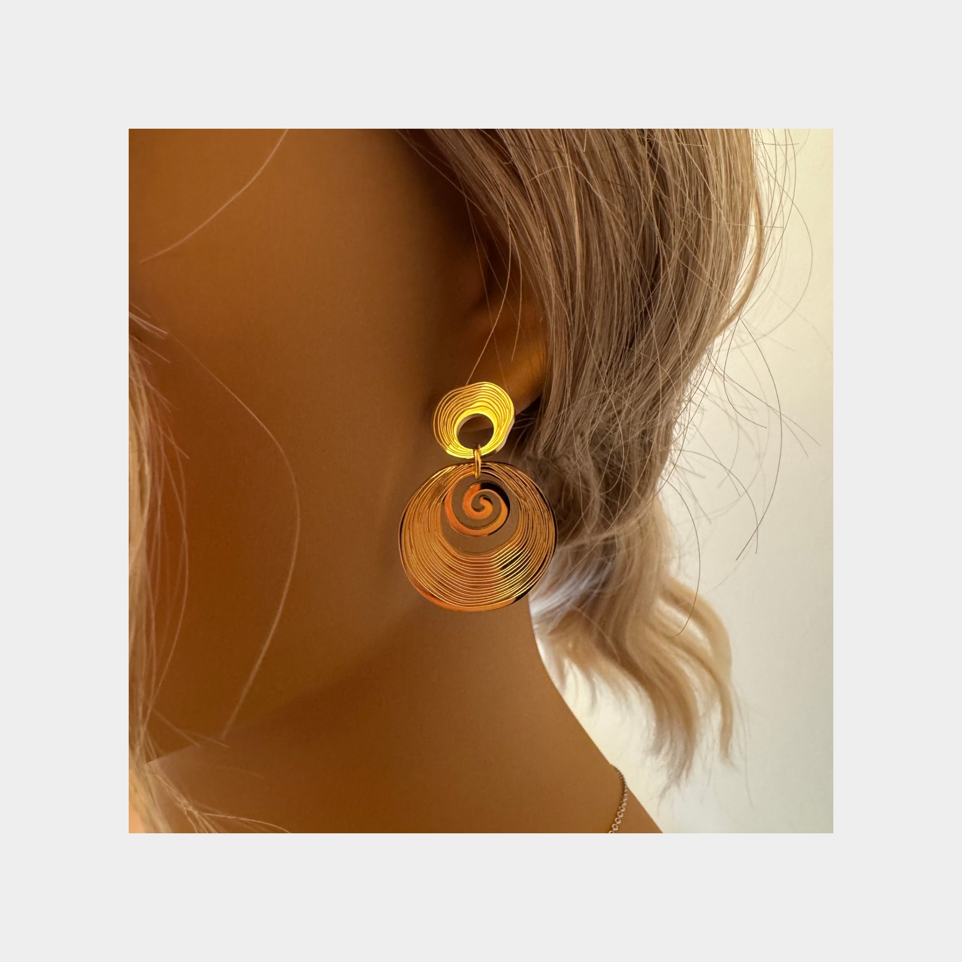 These 18-karat gold plated round spiral earrings are incredibly versatile and can be worn on a variety of occasions. Whether you're looking for something to wear casually or on a night out, these earrings will elevate your outfit and style.