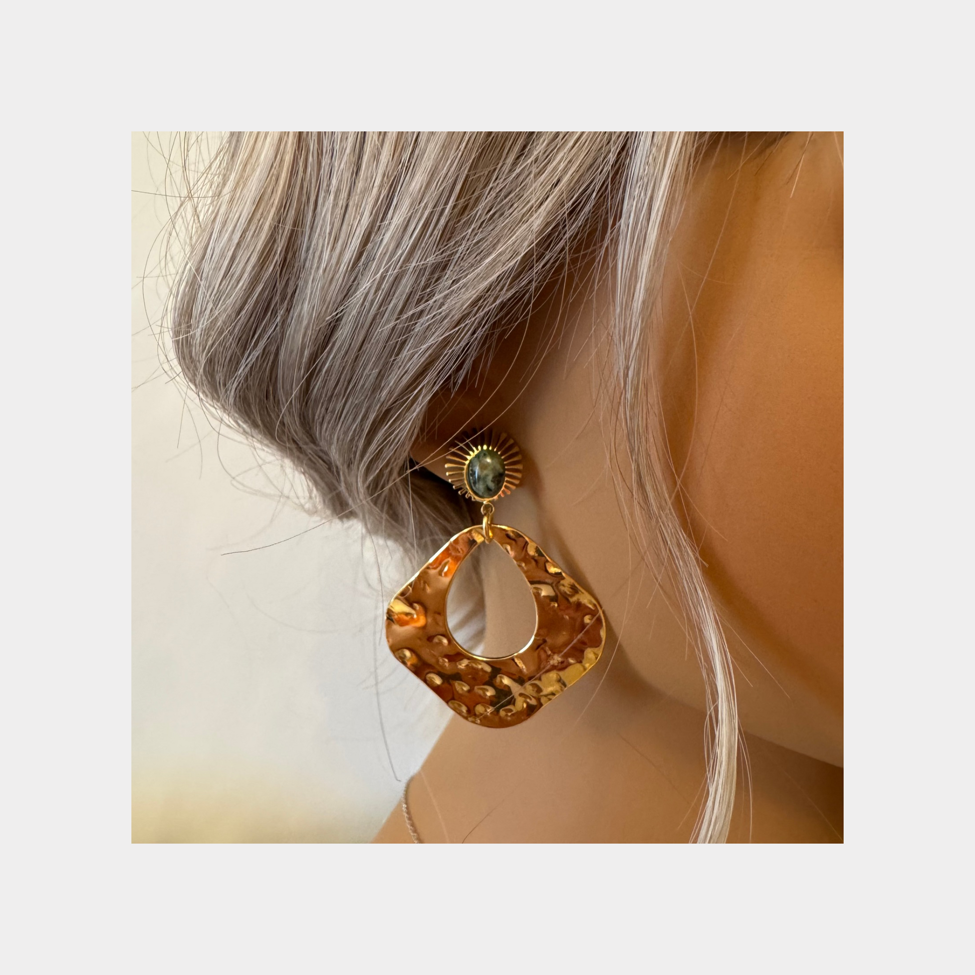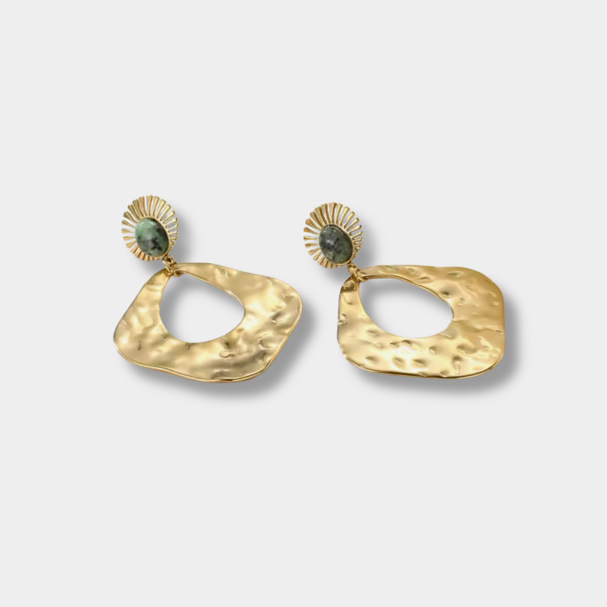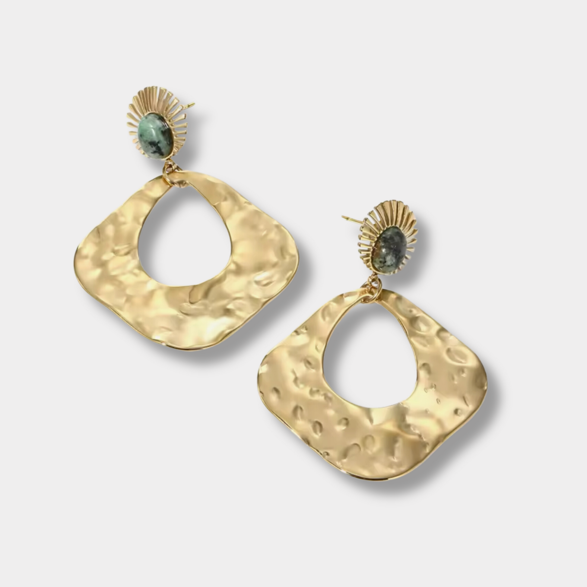 These 18-karat gold plated natural stone drop earrings are incredibly versatile and can be worn on a variety of occasions. Whether you're looking for something to wear casually or on a night out, these earrings will elevate your outfit and style.