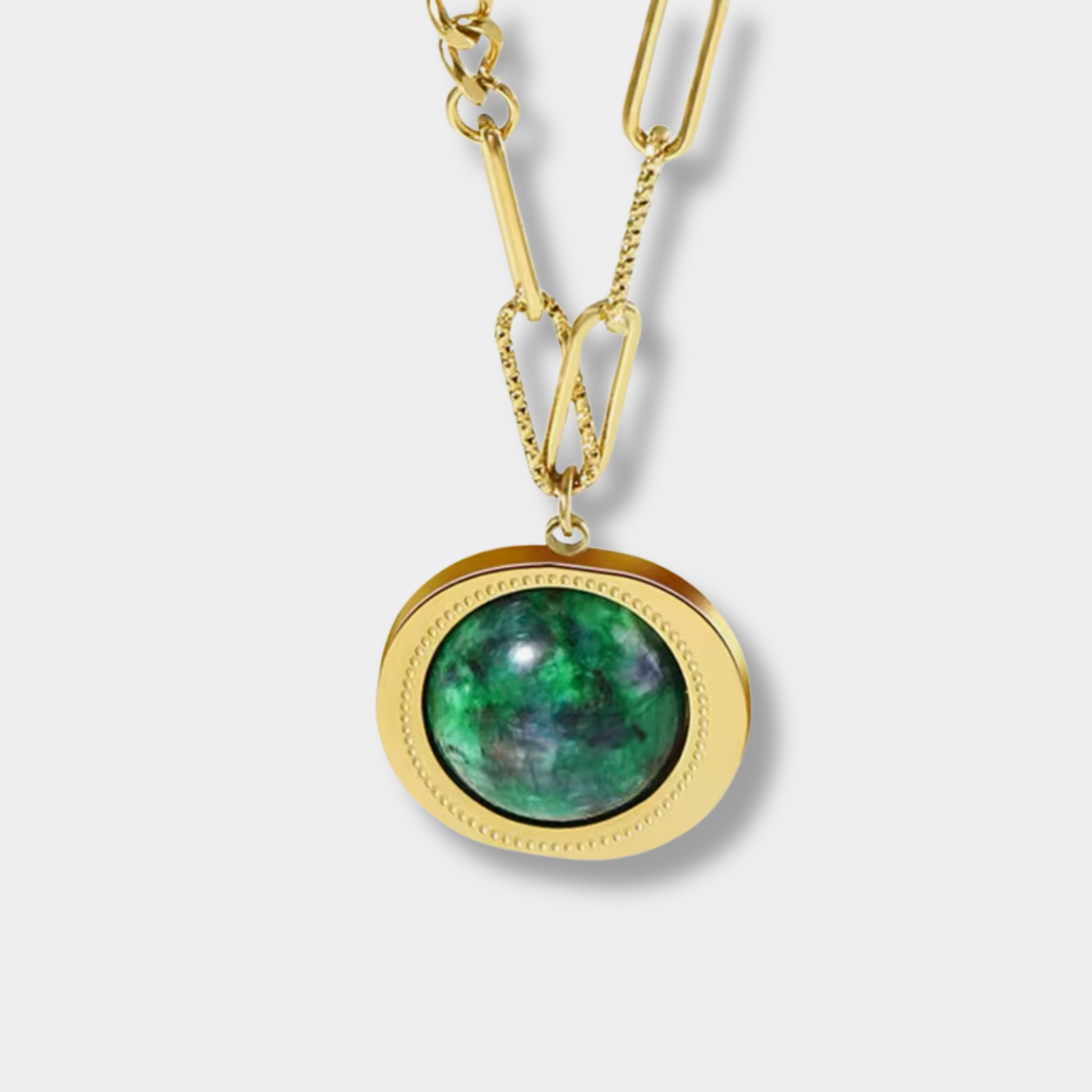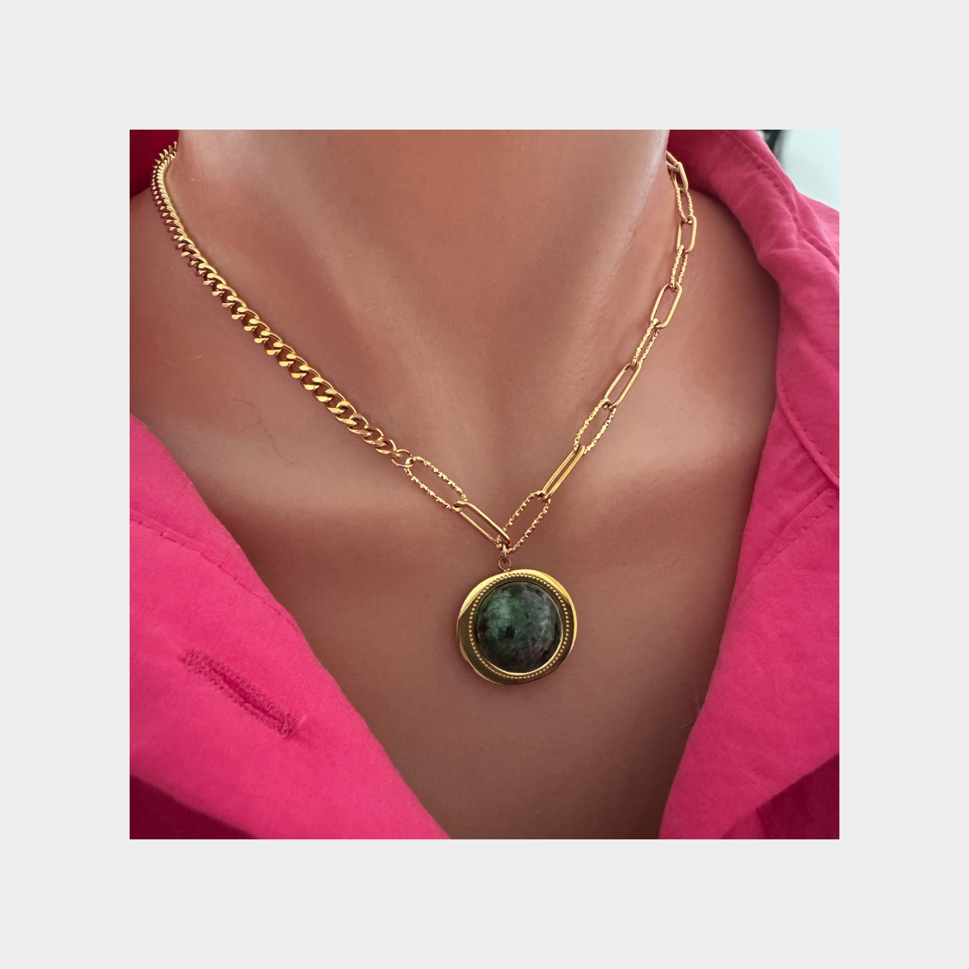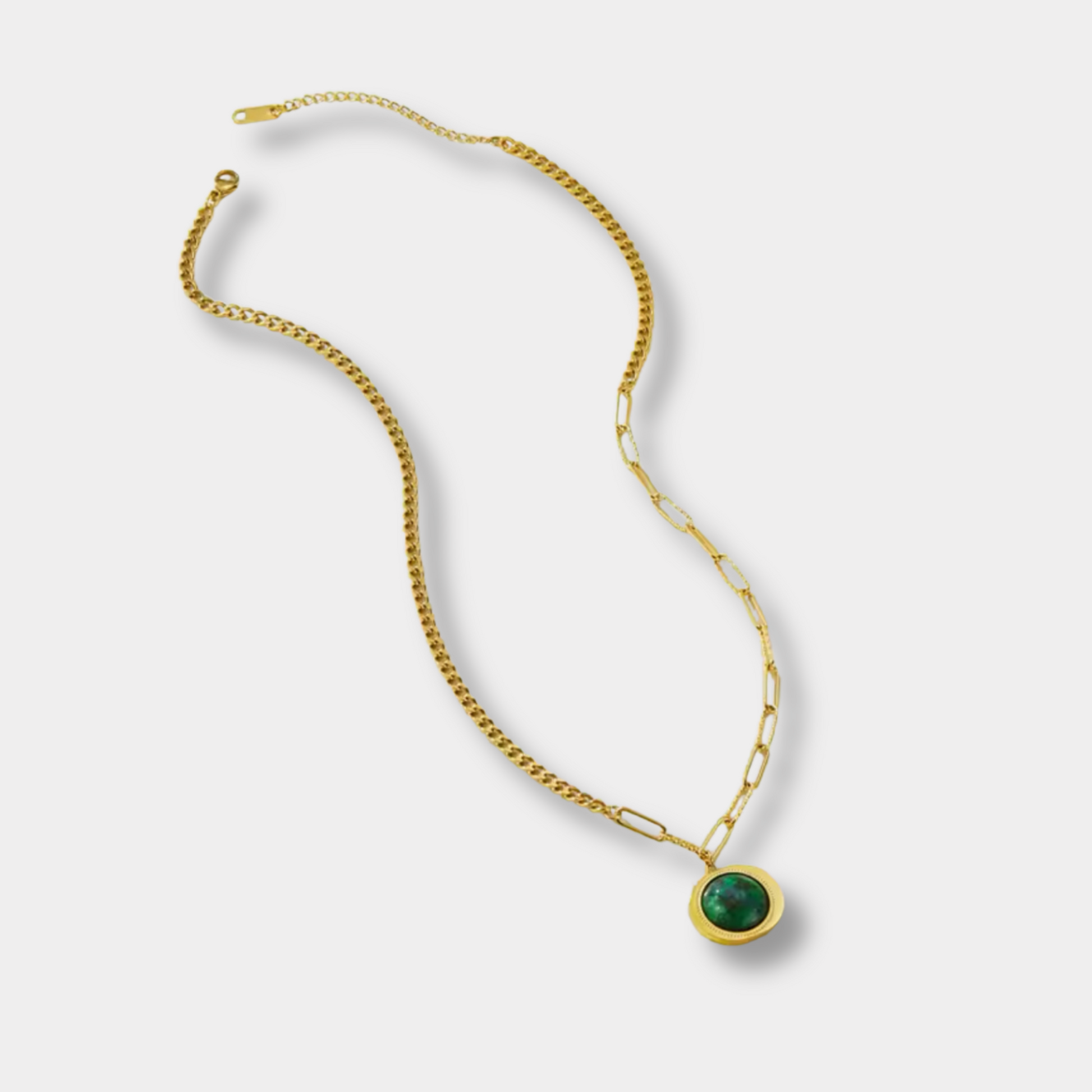 This 18-karat gold plated natural stone necklace is incredibly versatile and can be worn on a variety of occasions. Whether you're looking for something to wear casually or on a night out, this necklace will elevate your outfit and style.