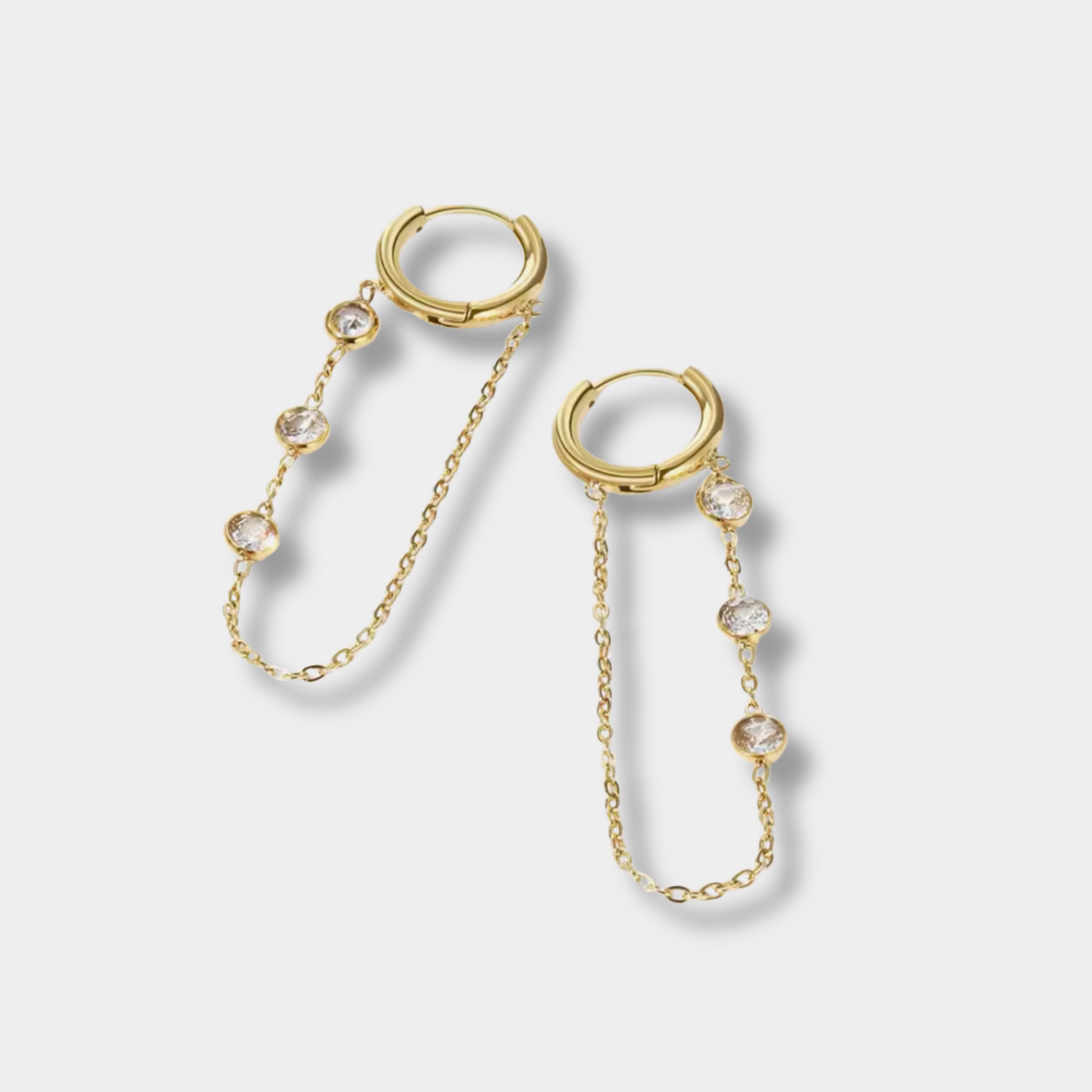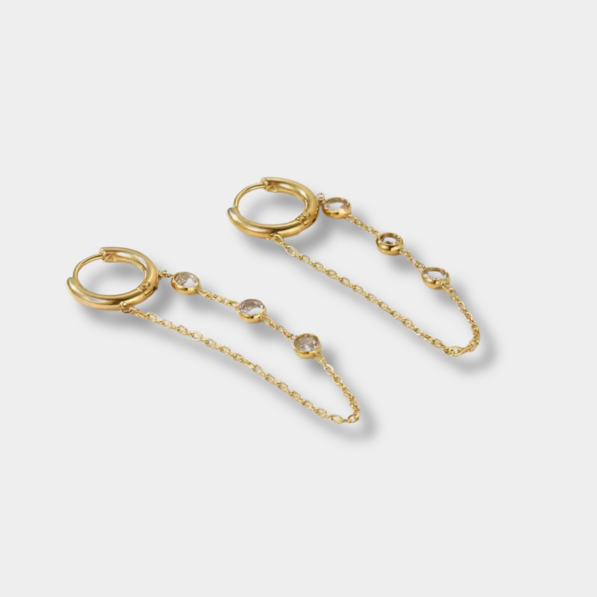 These 18-karat gold plated huggie hoop drop earrings are incredibly versatile and can be worn on a variety of occasions. Whether you're looking for something to wear casually or on a night out, these earrings will elevate your outfit and style.