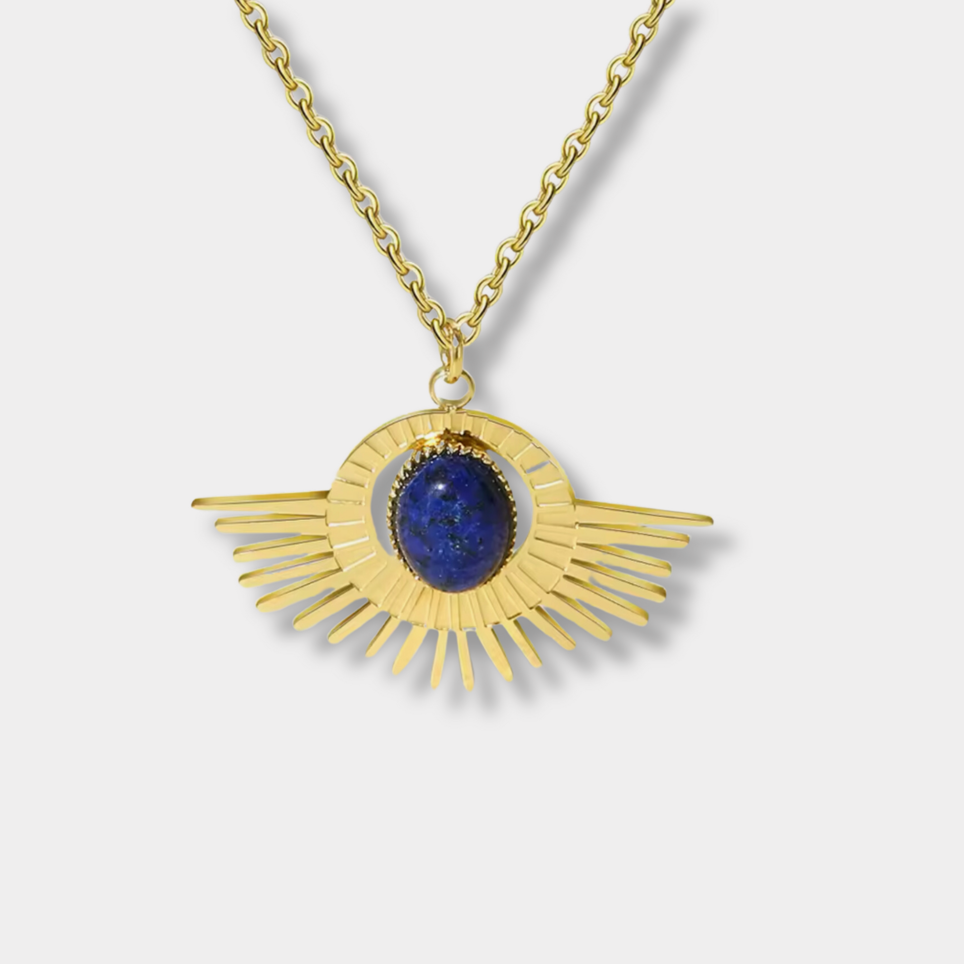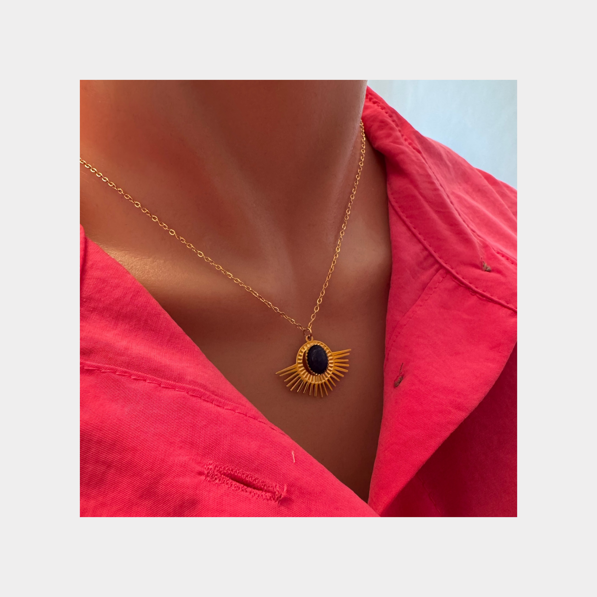This 18-karat gold plated blue stone necklace is incredibly versatile and can be worn on a variety of occasions. Whether you're looking for something to wear casually or on a night out, this necklace will elevate your outfit and style.