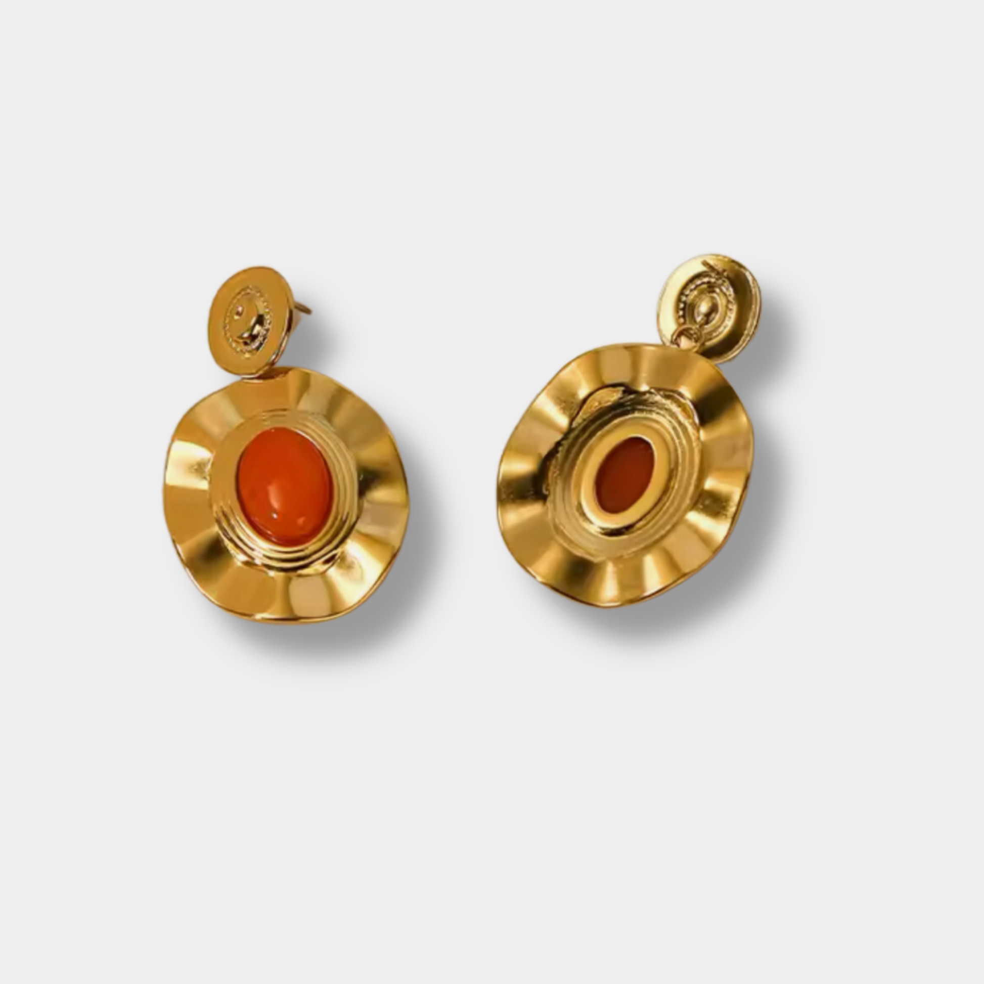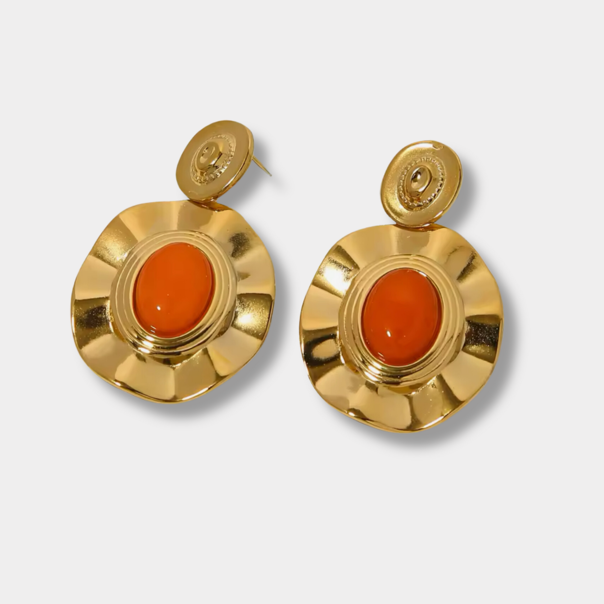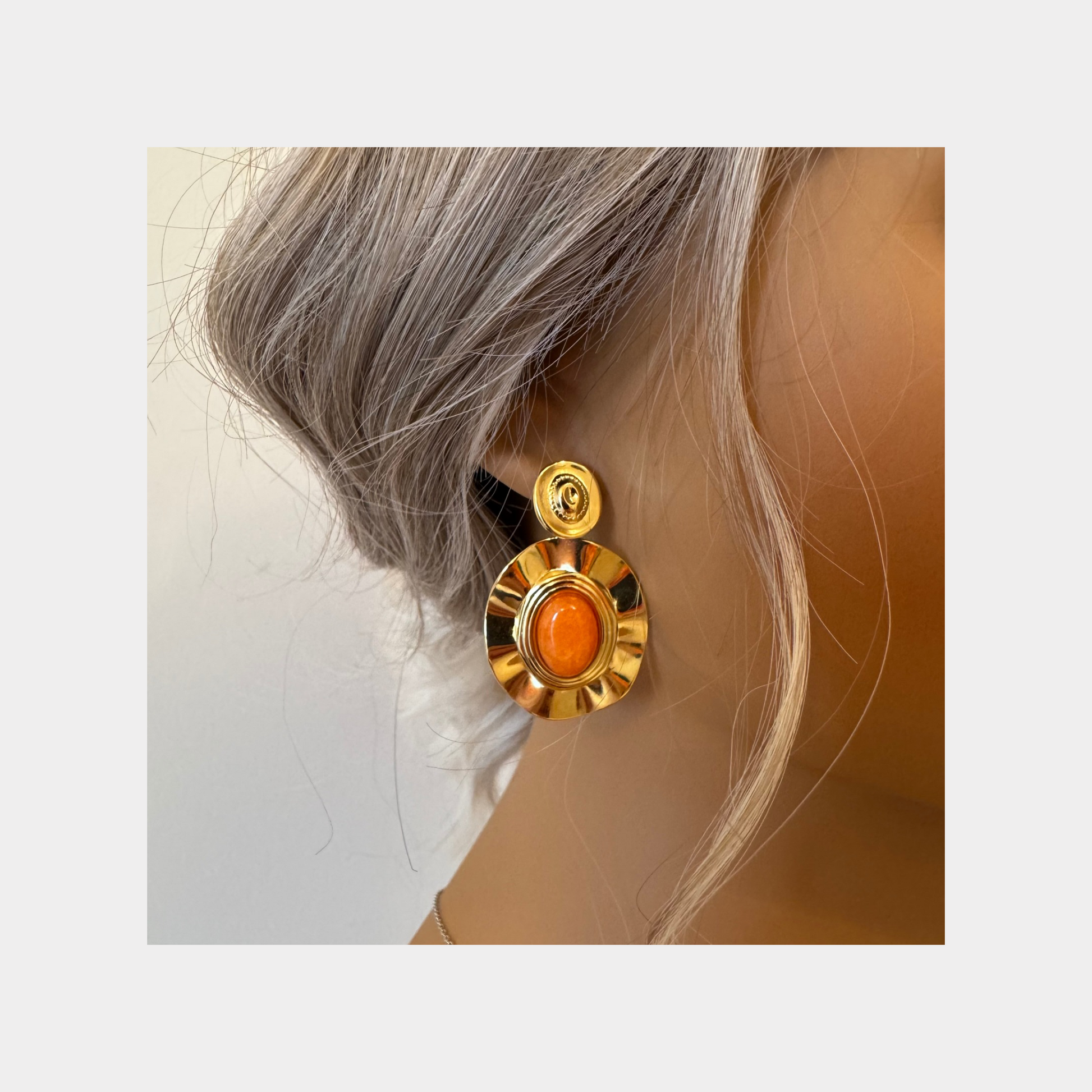 These 18-karat gold plated orange sunstone earrings are incredibly versatile and can be worn on a variety of occasions. Whether you're looking for something to wear casually or on a night out, these earrings will elevate your outfit and style.