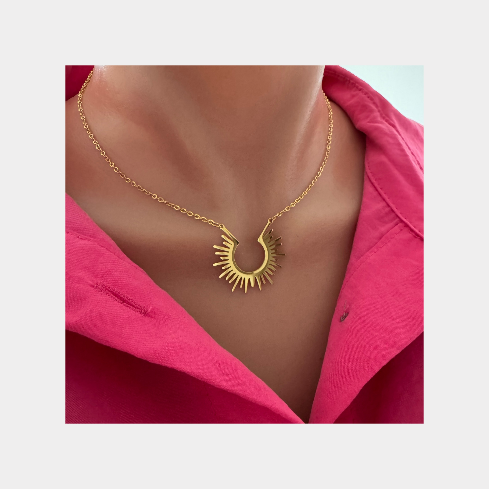 This 18-karat gold plated horseshoe spike necklace is incredibly versatile and can be worn on a variety of occasions. Whether you're looking for something to wear casually or on a night out, this necklace will elevate your outfit and style.
