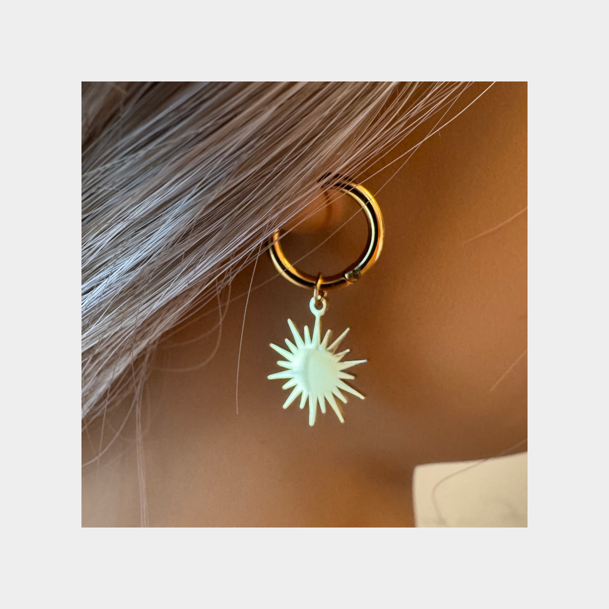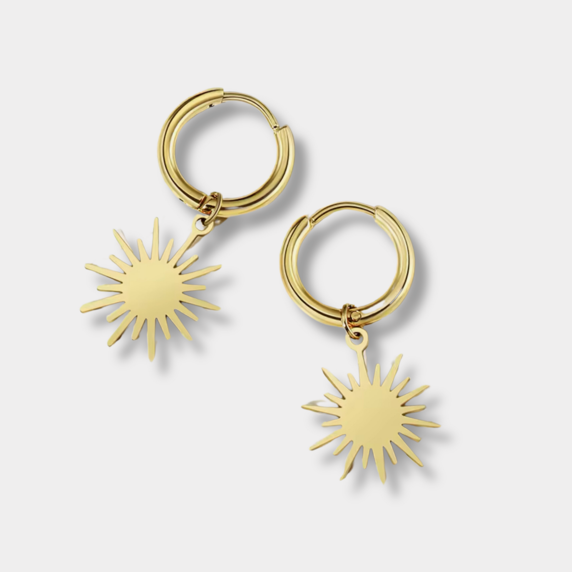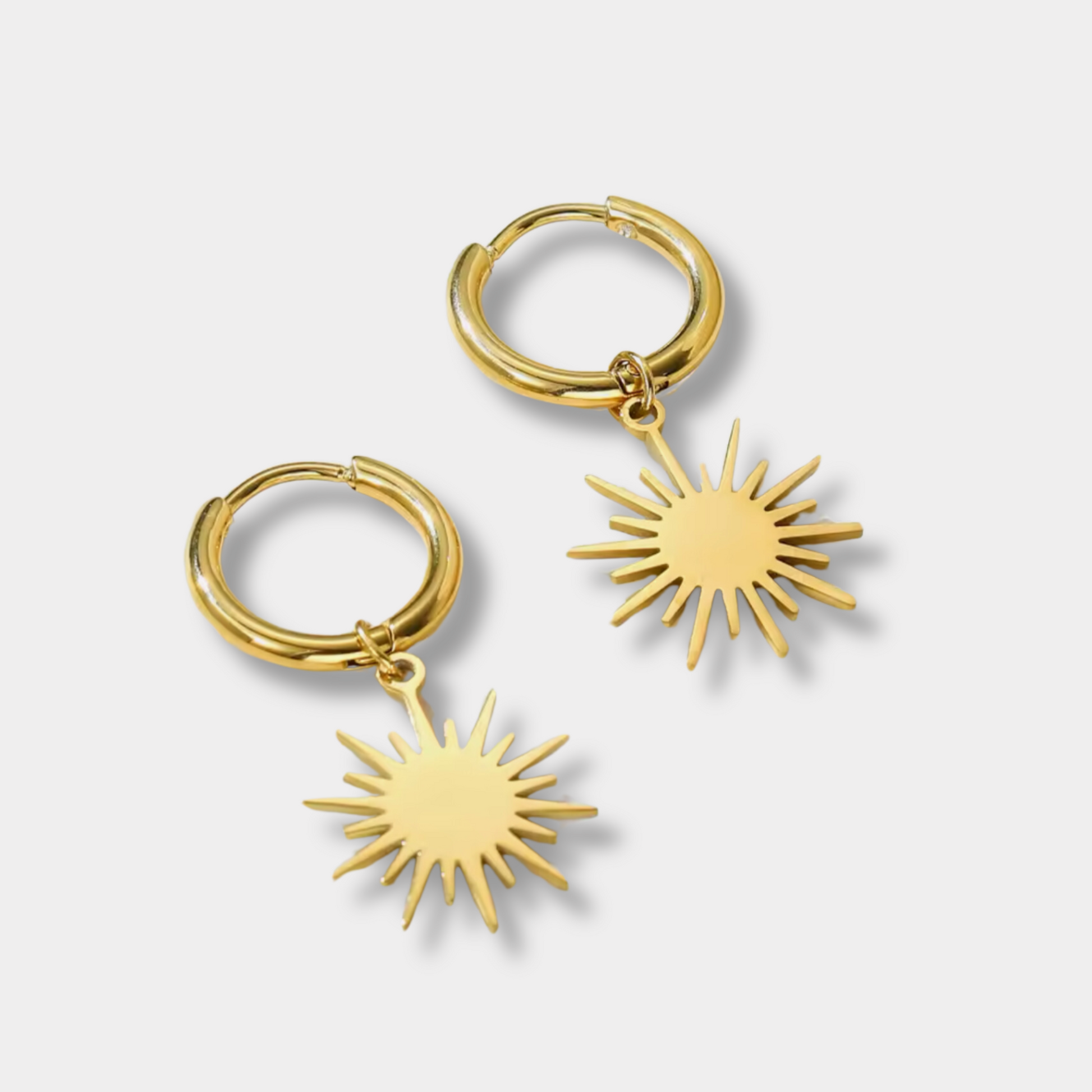 These petite 18-karat gold plated huggie hoop sun earrings are incredibly versatile and can be worn on a variety of occasions. Whether you're looking for something to wear casually or on a night out, these earrings will elevate your outfit and style.