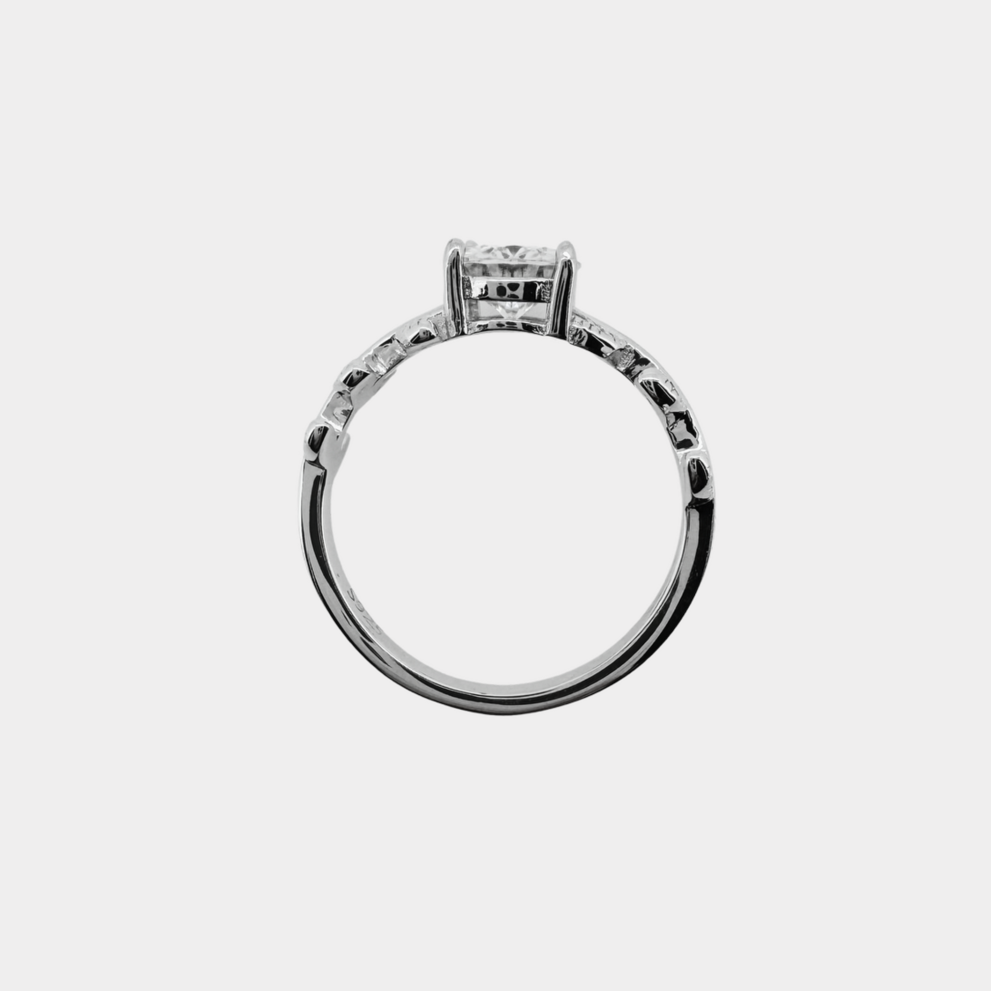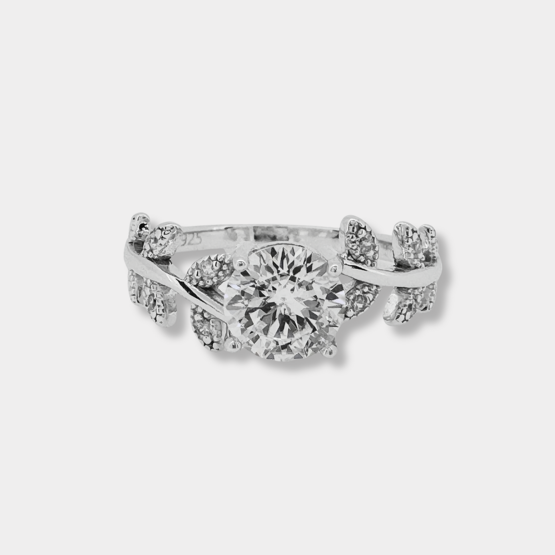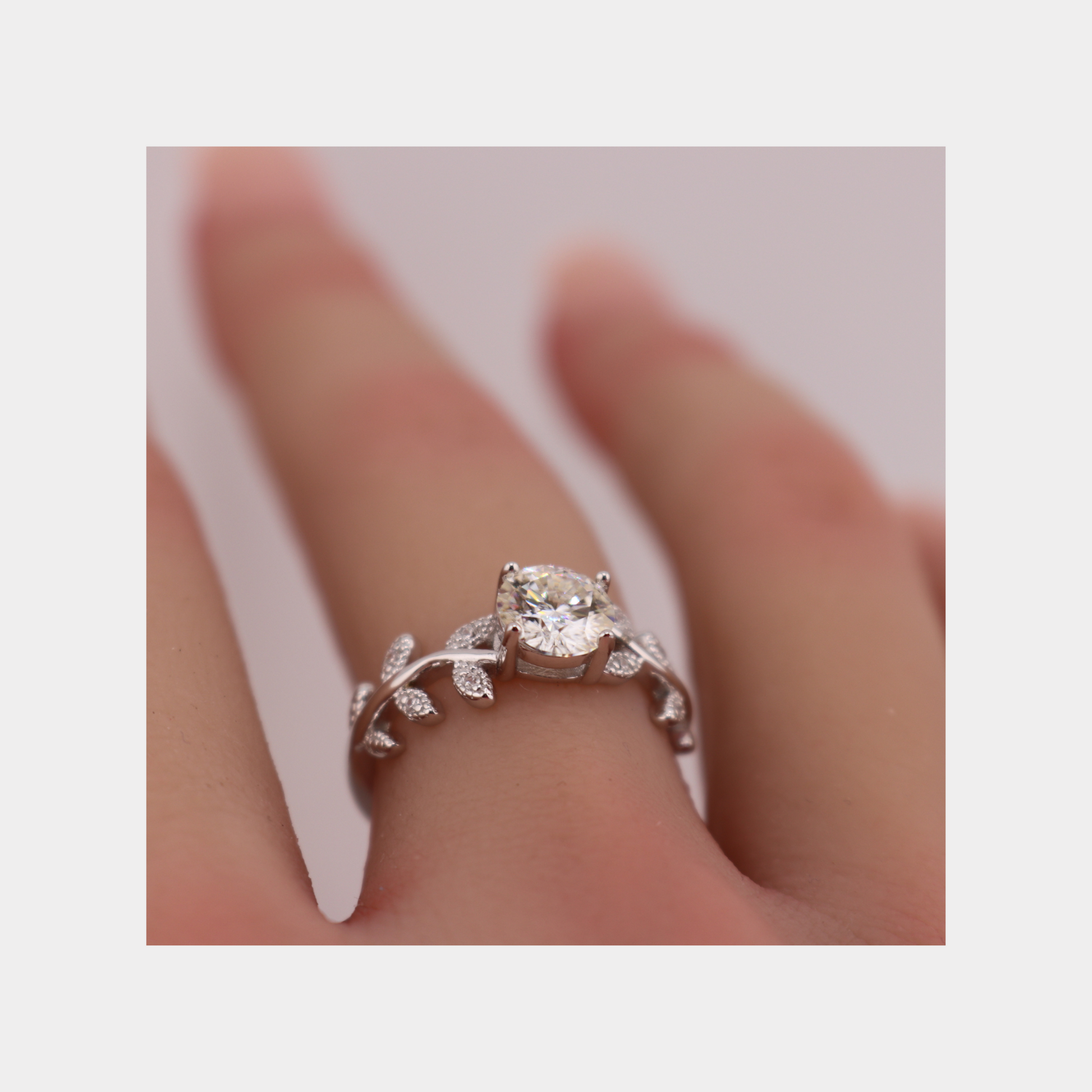 Crafted with the finest moissanite gemstones and sterling silver, this leaf patterned ring is the perfect choice for a timeless and elegant engagement ring. This ring makes for an ideal gift for a loved one, or a luxurious indulgence for yourself.