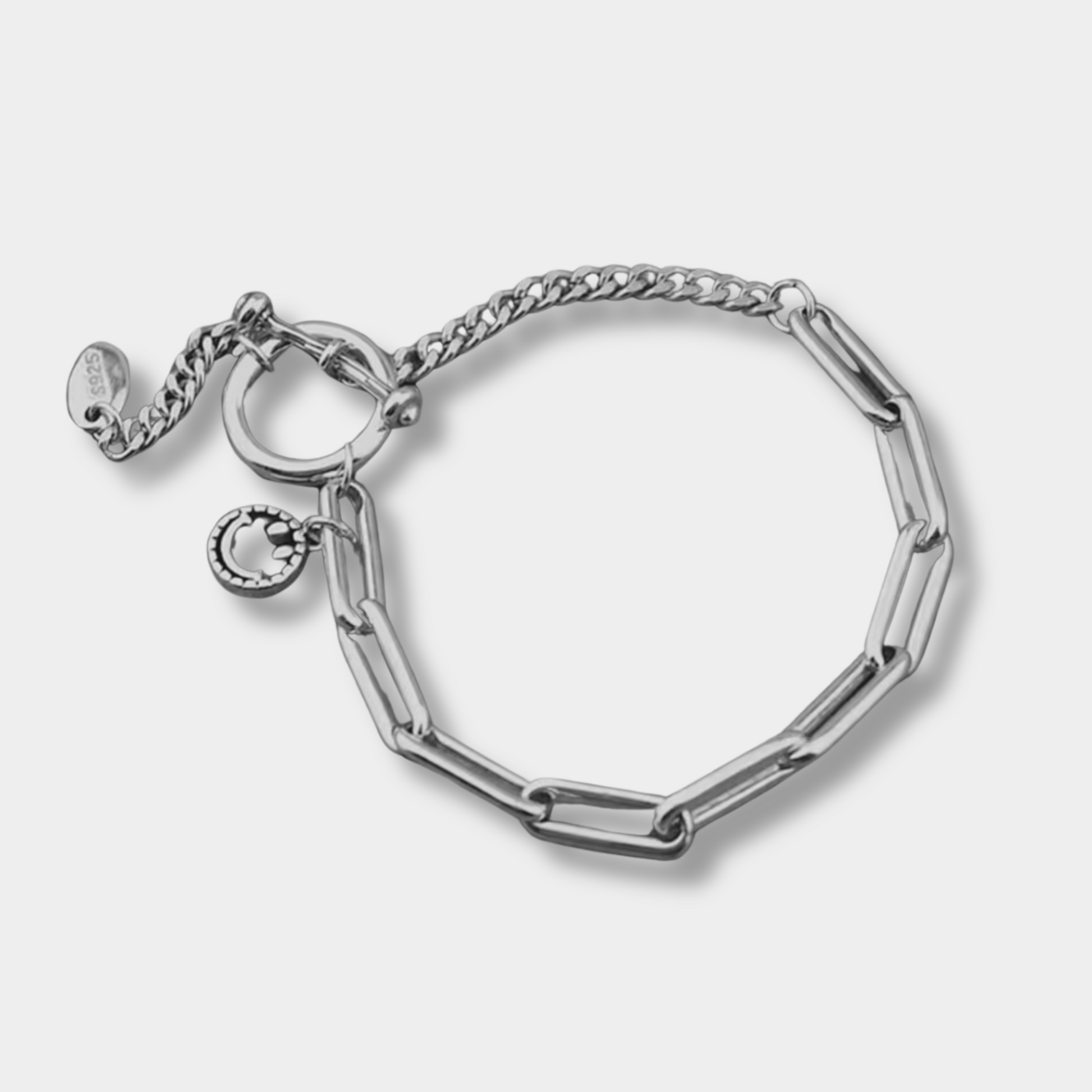 This sterling silver link chain T-bar bracelet is a fashionable and versatile accessory, perfect for any occasion. The T-bar closure adds a touch of elegance to this modern piece, making it an excellent gift option for a loved one or a treat for yourself.