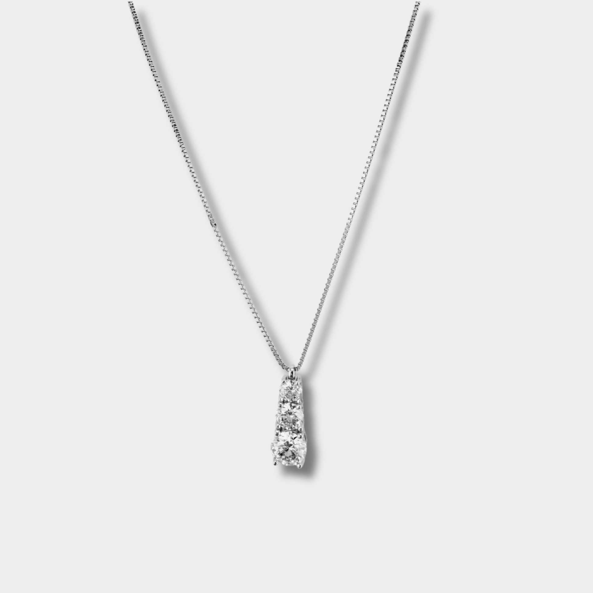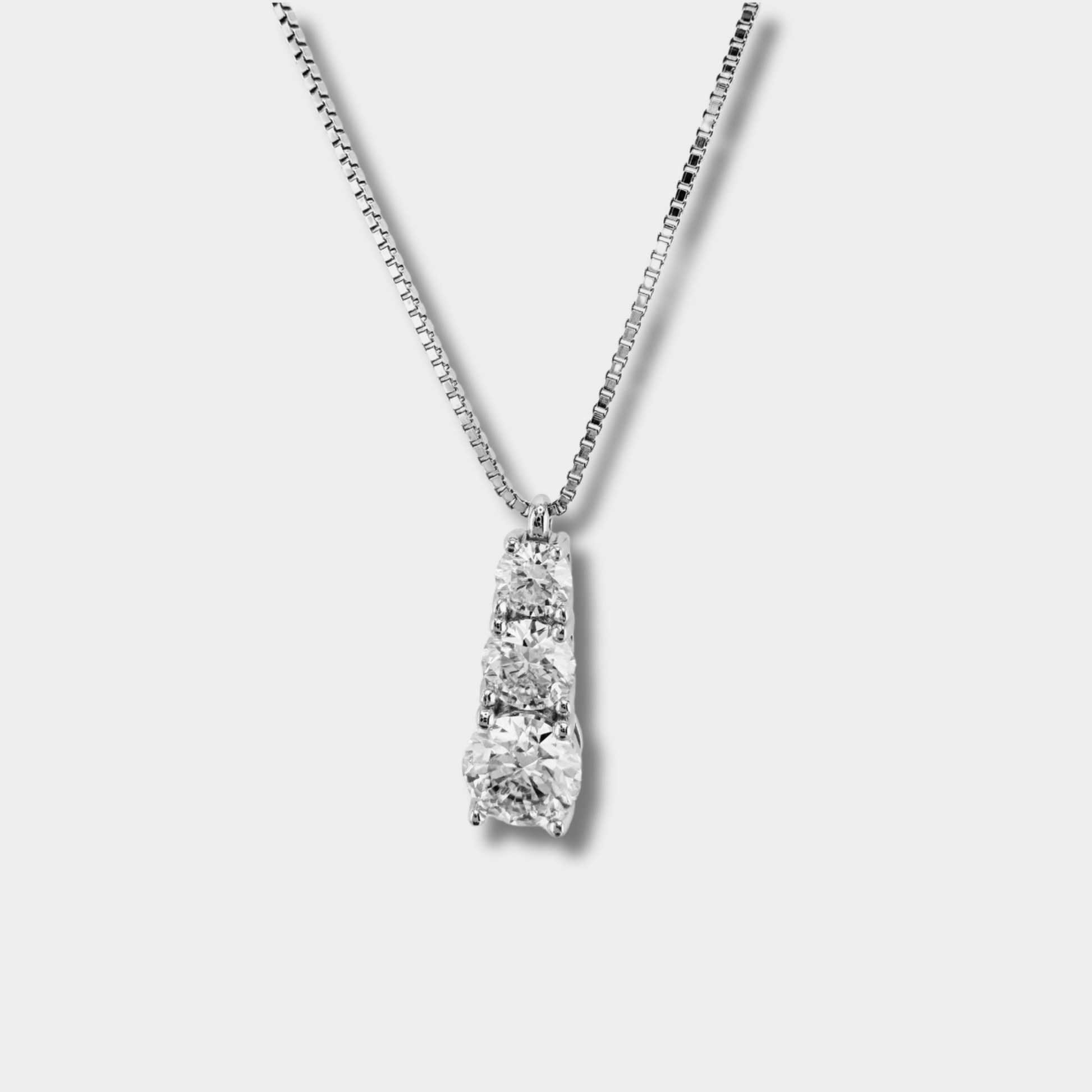 Indulge in the stunning sparkle of this 1.8 carat triple stone moissanite necklace. Expertly crafted in sterling silver, this beautiful piece is the perfect gift for a loved one or a luxurious treat for yourself. Revel in its brilliance and elegance with every wear.