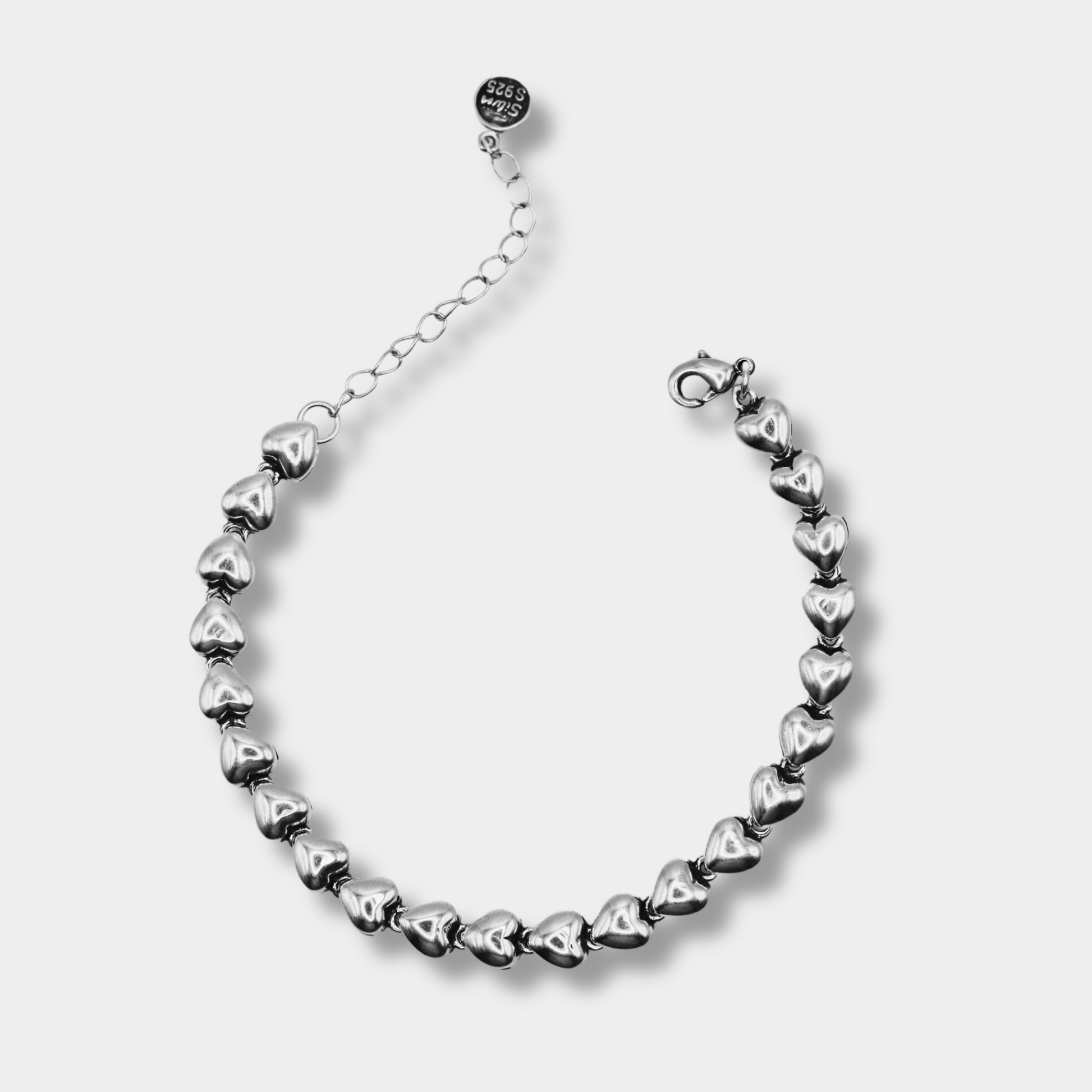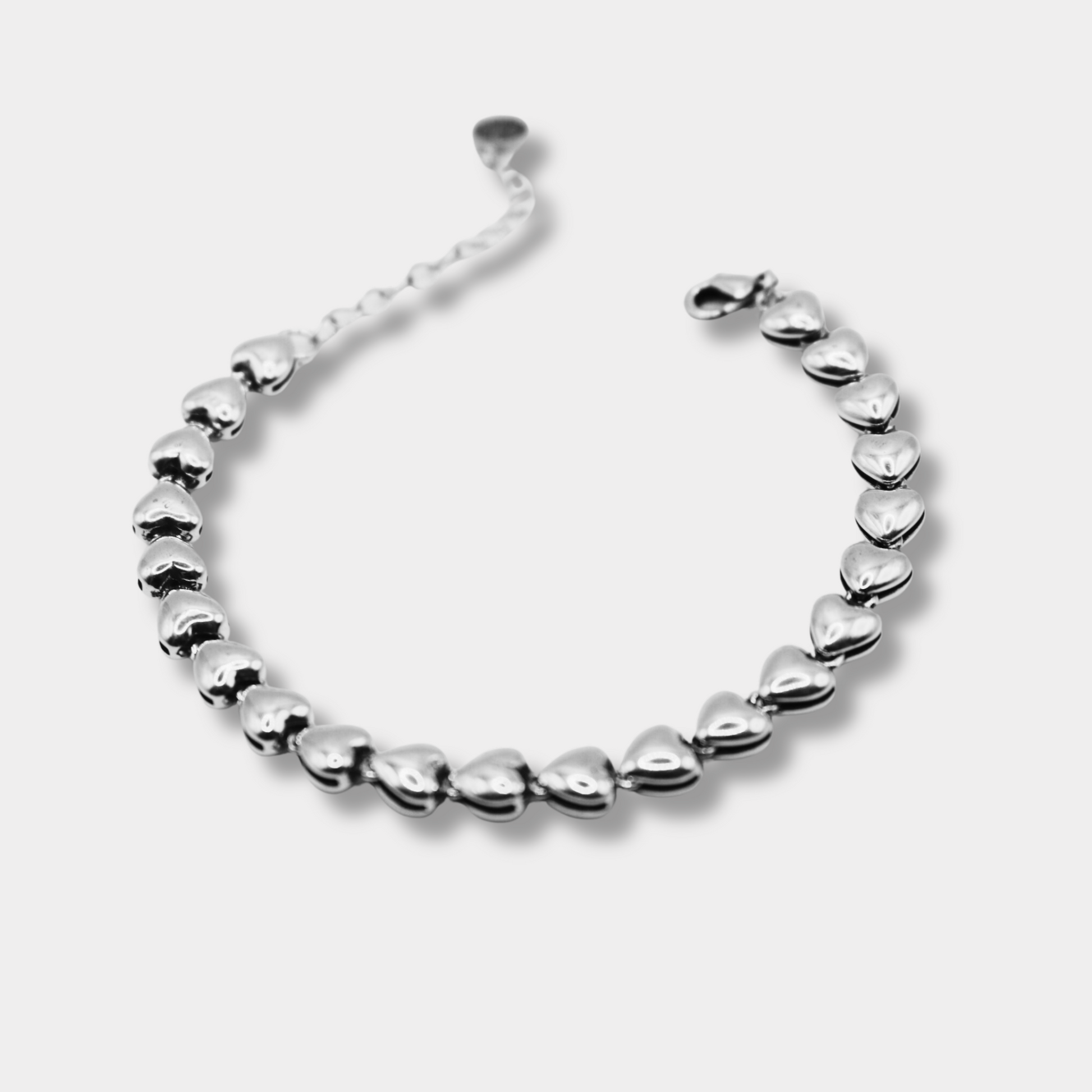 Crafted from beautiful sterling silver, our multi-heart bracelet is a stylish and versatile piece that can be worn for any occasion. The multi-heart design adds a touch of elegance, making it the perfect gift for yourself or a loved one. Treat yourself to this fashionable accessory and elevate your style.
