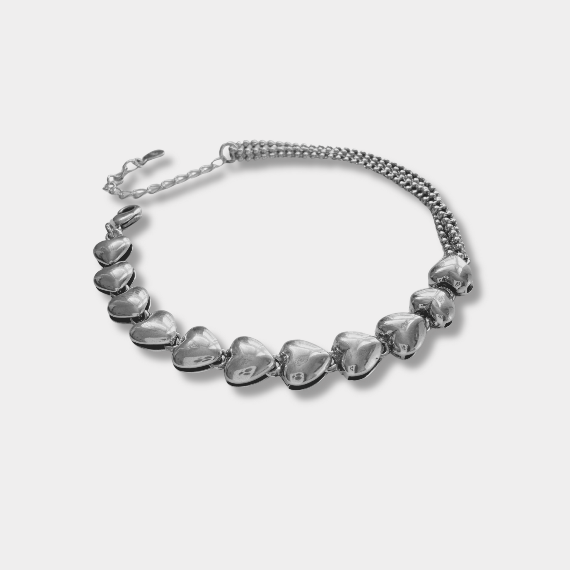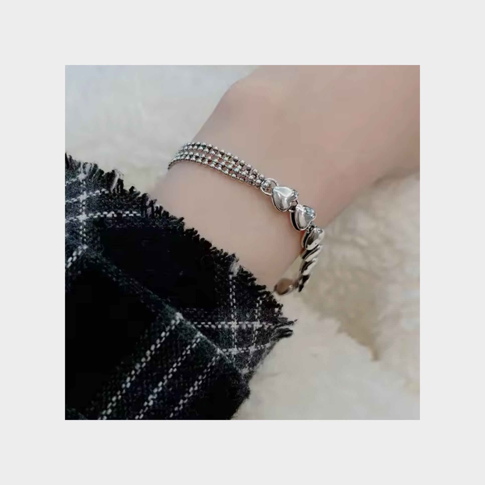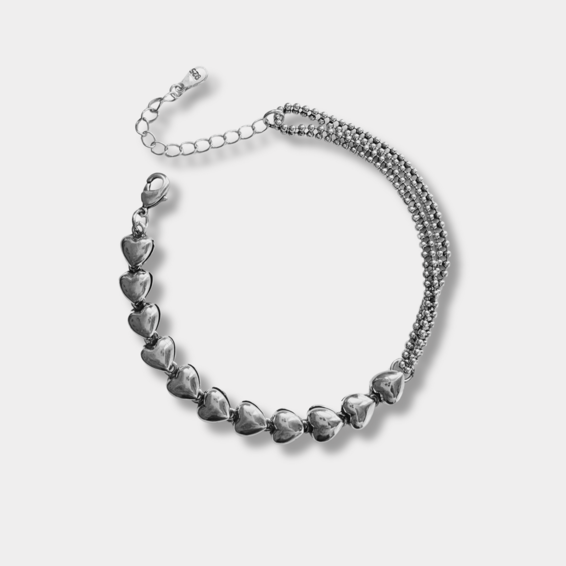 Crafted from beautiful sterling silver, our multi-heart mismatch bracelet is a stylish and versatile piece that can be worn for any occasion. The multi-heart design adds a touch of elegance, making it the perfect gift for yourself or a loved one. Treat yourself to this fashionable accessory and elevate your style.