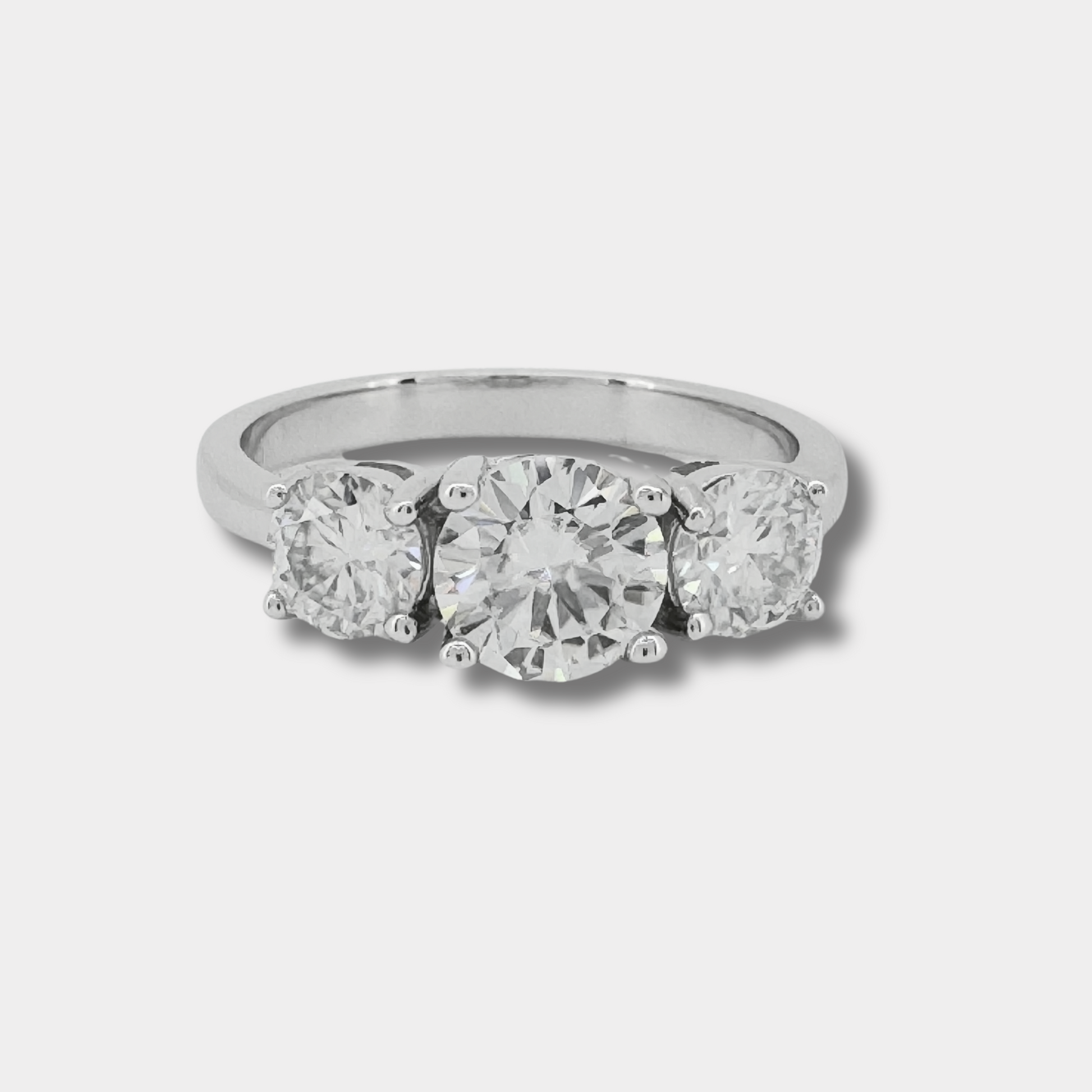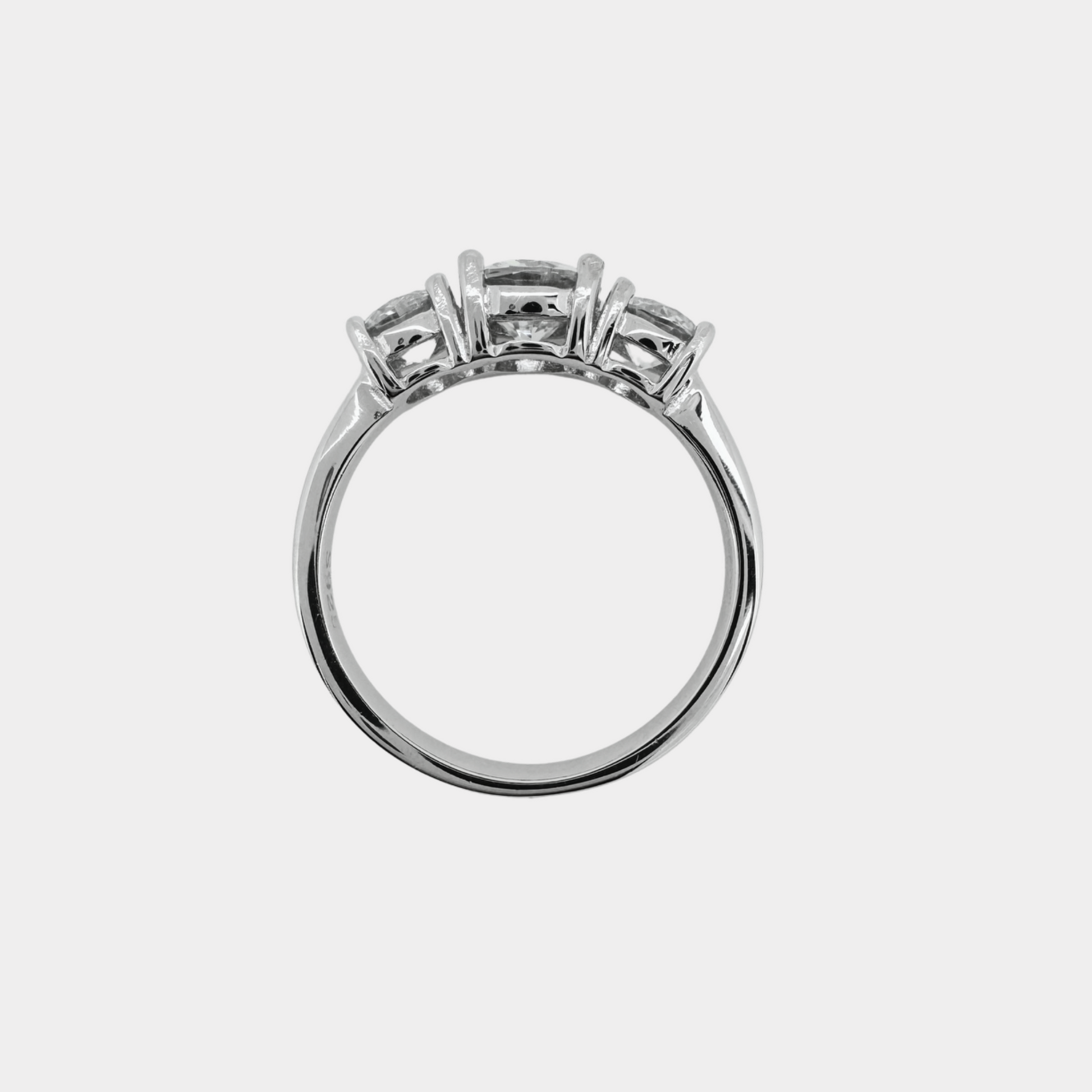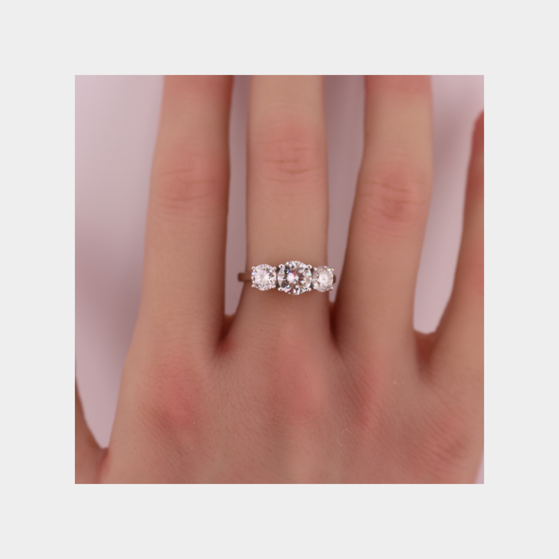 Discover the stunning beauty and exceptional durability of moissanite with our triple gemstone ring. Expertly crafted, it shares many of the same properties as diamonds making it the ideal choice for those who crave sparkle.